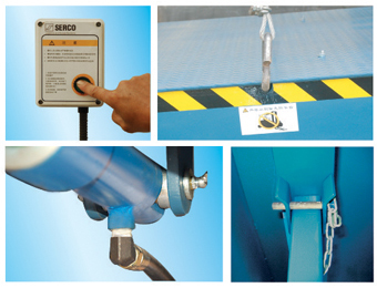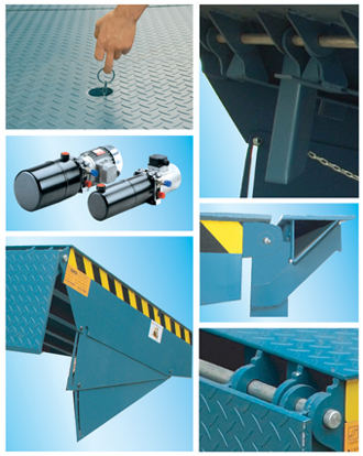 當(dāng)卡車停泊到位后,操作員持續(xù)按住控制箱上的按鈕,工作臺面呈斜坡升高,升至高點(diǎn)時延伸板自動打開。松開此控制按鈕后,裝卸平臺工作臺面自動下降直至延伸板搭接至卡車尾部,此時即可開始進(jìn)行裝卸作業(yè)。 平臺采用始終與地坑尾部保持齊平的設(shè)計,在裝卸貨物時有效補(bǔ)償車廂底部斜度達(dá)100mm并大限度地保證與地坑尾部的穩(wěn)固連接?;铐撔〈畎逵雠鲎部苫乜s。 可選配置: