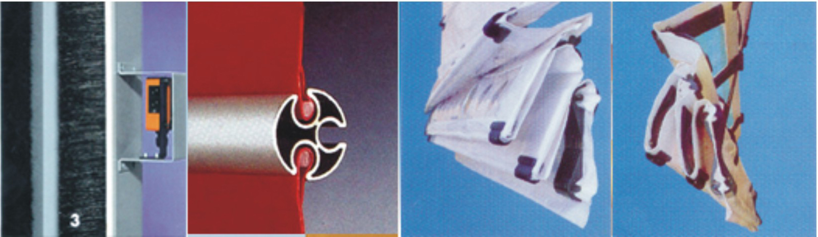 簾  布:歐洲原裝進口高密度工業(yè)基布,厚度為0.8-1.2mm,防火級別達到法國NF-P92-503標準,黃色、藍色、白色或全透明等多種顏色可供選擇;其簾布獨有的細小孔狀纖維結(jié)構(gòu),具有更好的空氣透氣性。